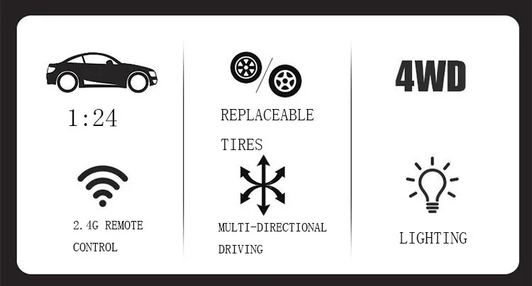 Basic performance: forward, backward, left and right, drift, four-wheel drive, lighting