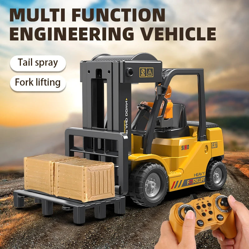 2.4Ghz Remote Control Car Rc Forklift Truck Engineering Vehicles Cranes Liftable Spray Simulated Sound Toys For Children's Gifts