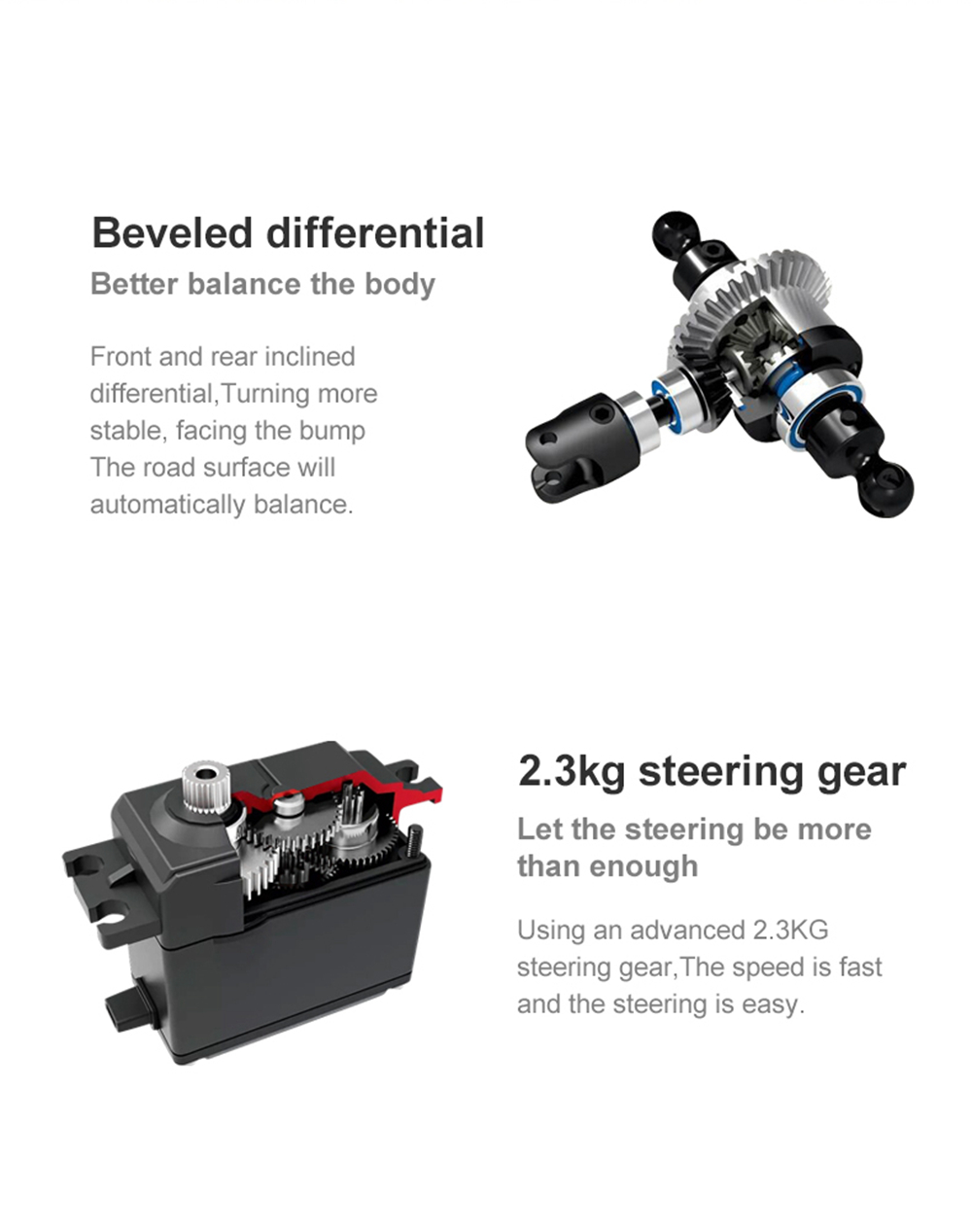 3. Using an advanced 2.3KG steering gear,The speed is fastand the steering is easy.